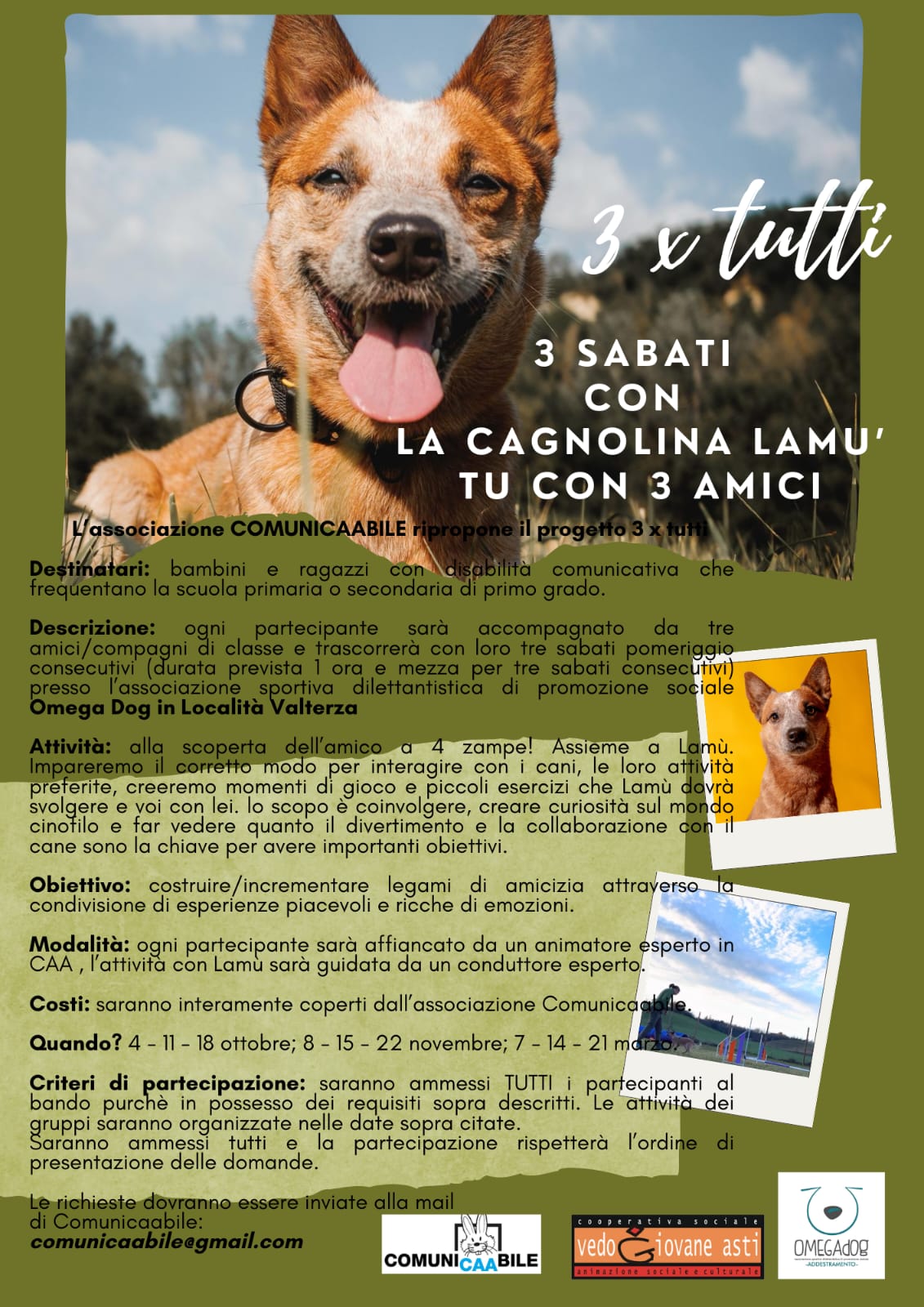 per familiari, care giver e insegnanti sulle tematiche dell’inclusione sociale e la creazione di reali occasioni di incontro e comunicazione. Tutti gli anni l’associazione organizza eventi ricreativi a Natale e a Carnevale finalizzati alla sensibilizzazione del territorio nei confronti della CAA e di coloro che la utilizzano e alla creazione di momenti di inclusione, partecipazione sociale per i bambini con CBC e le loro famiglie.